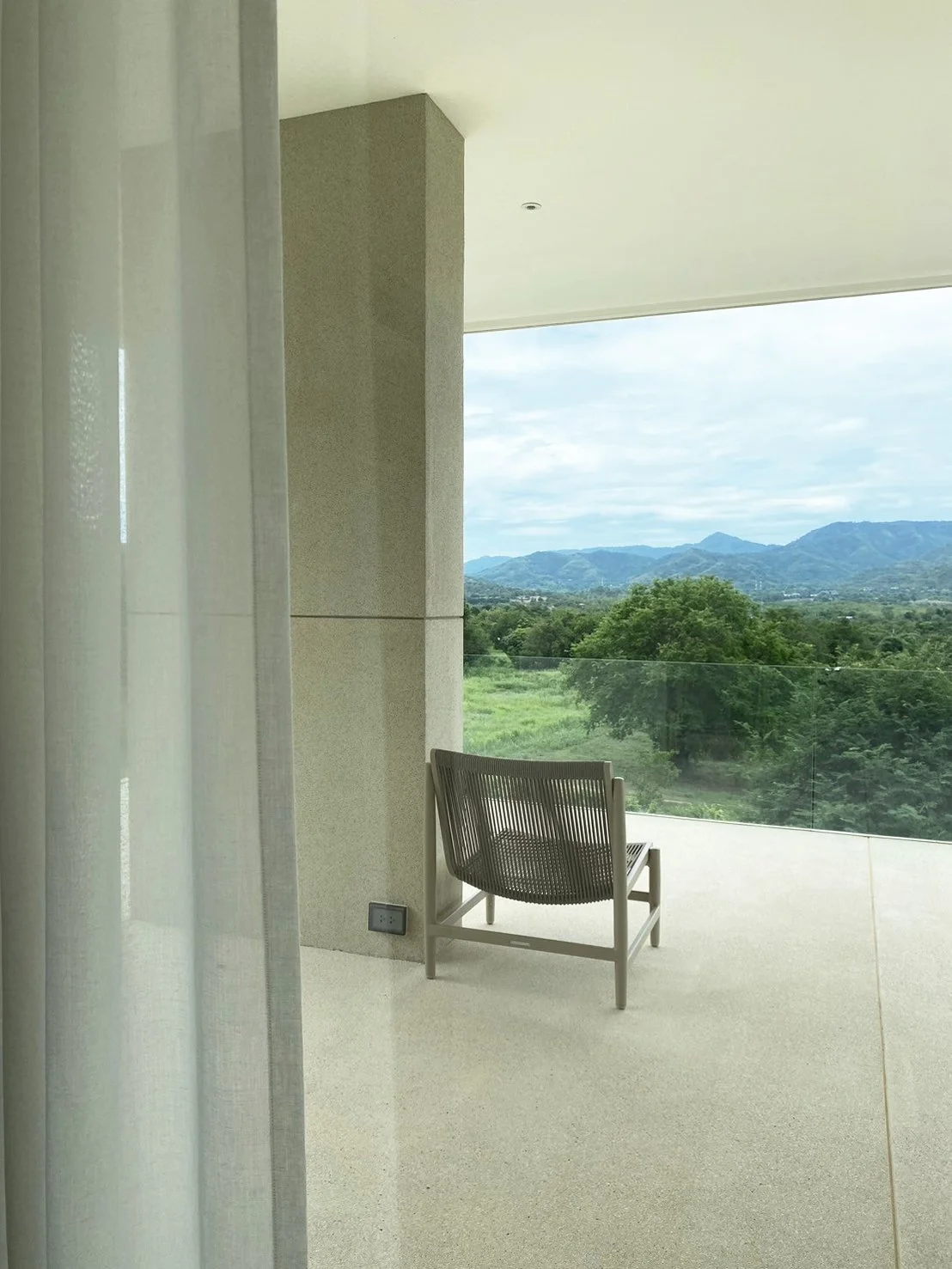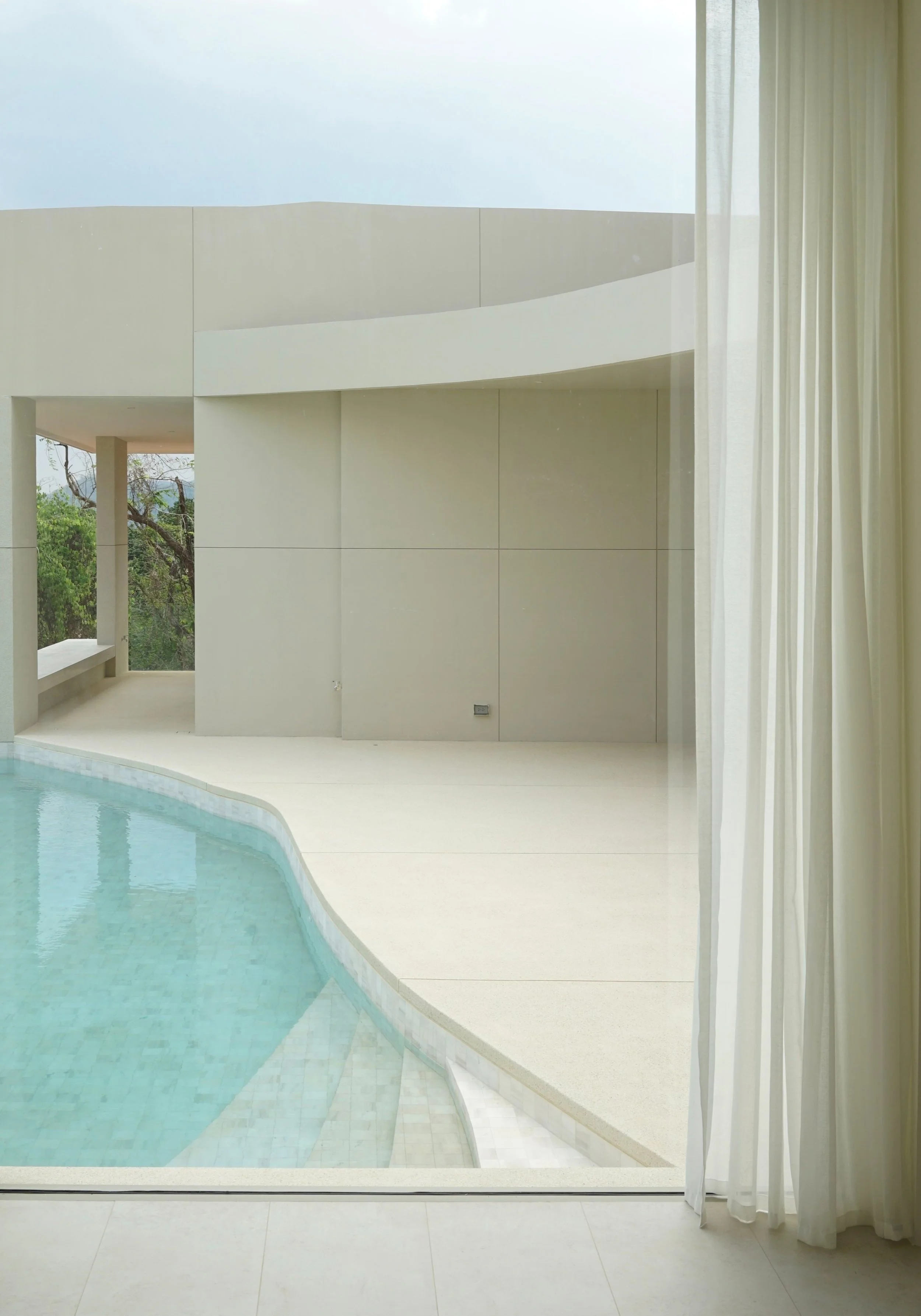 Upon entering the house, one would be greeted by a broad view of the oblique pool and the curved canopy, capturing a striking composition of Khao Yai National Park in the background